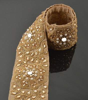 Hand Beaded Bridal Border 1 Yd Trim Golden Craft Lace Mirror Work