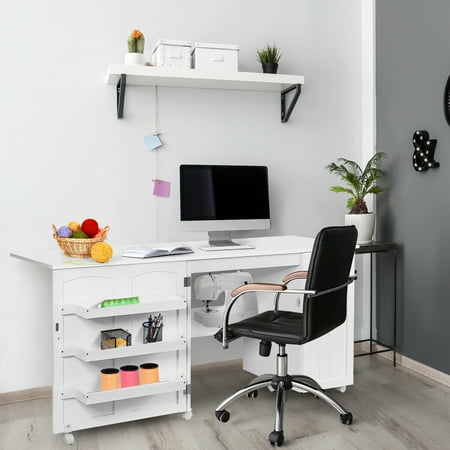 Costway White Folding Sewing Table Shelves Storage Cabinet Craft