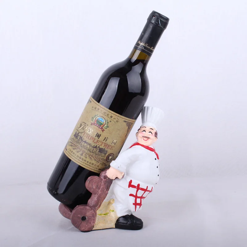 Push Cart Pull Cart Chef Wine Rack Resin Craft Home Decoration