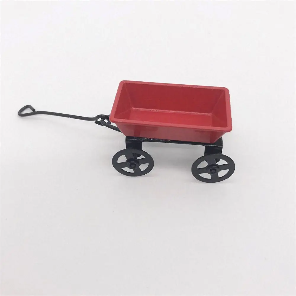 1 12 Scale Miniature Red Metal Cart Garden Pulling Cart