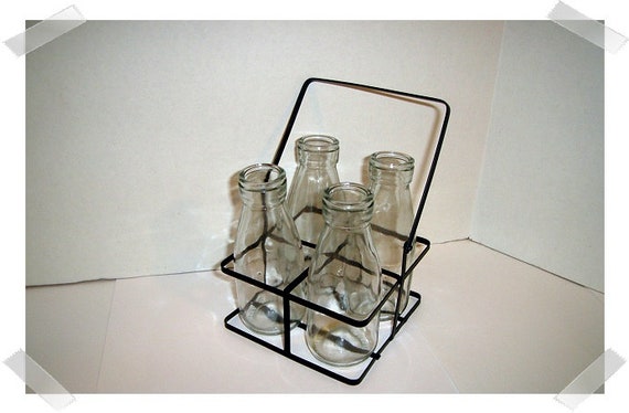 3 Bottle Vase Milk Caddy With Handle Antique Farmhouse
