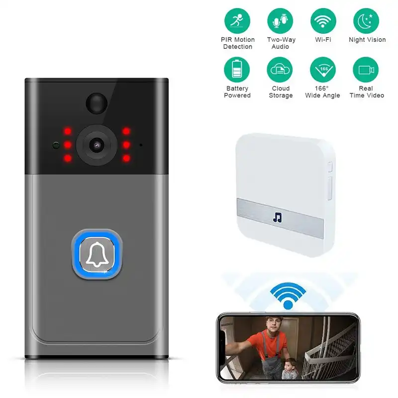 Wireless Video Doorbell Night Vision Wifi Video Doorbell Home Security Camera Two Way Audio For Office Apartment Door Garage Home Black Gray No Batteries Walmart Com Walmart Com