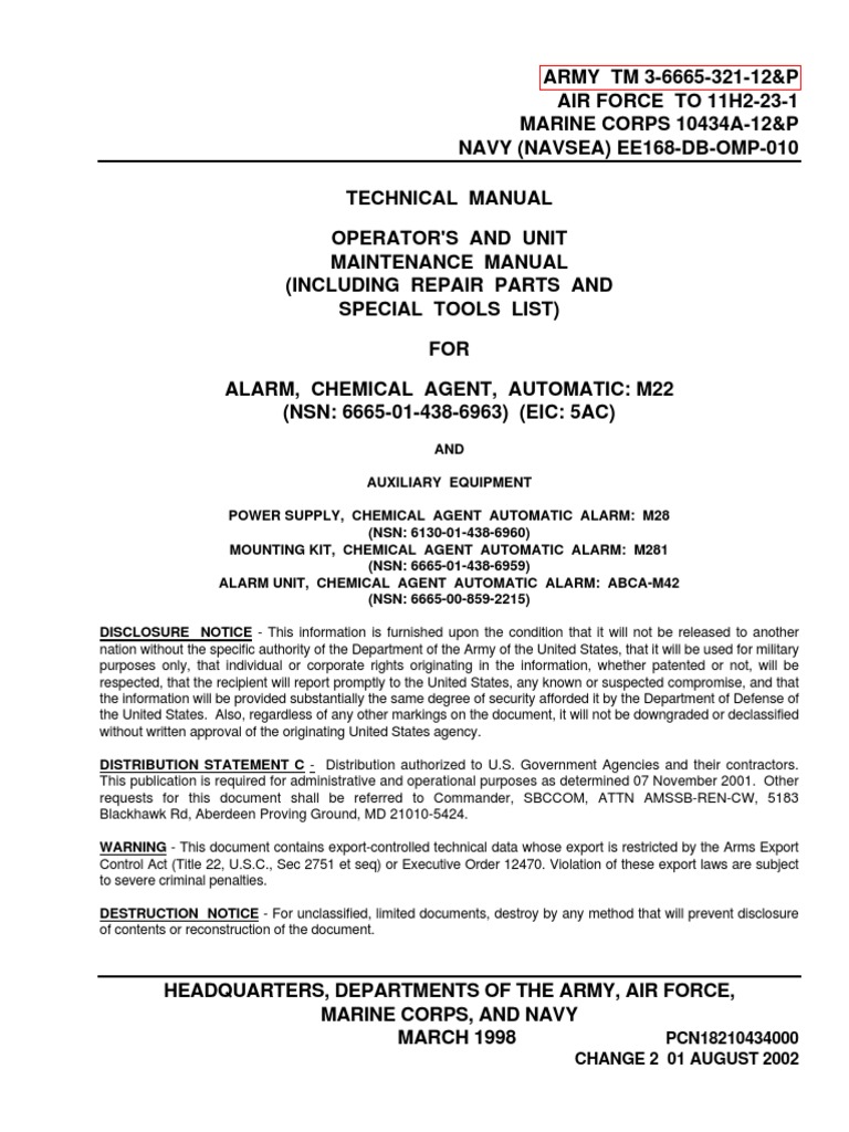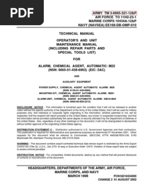 Tm 3 6665 321 12 P Alarm Chemical Agent Automatic M22 March 2005 Classified Information Battery Electricity