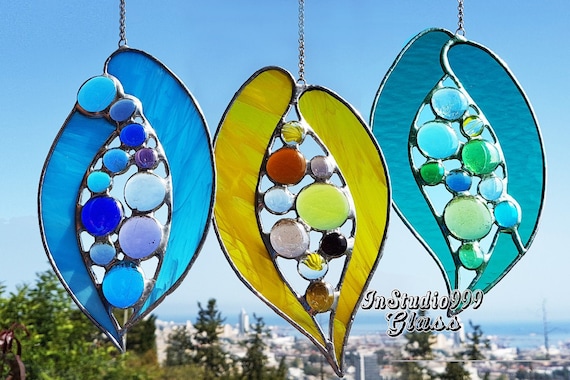 Stained Glass Leaf Suncatcher Leaves Wall Art Outdoor Etsy