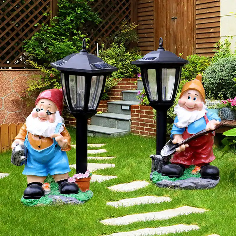 Outdoor Garden Decoration Resin Cartoon Dwarfs Sculpture Crafts Solar Light Ornaments Lawn Landscape Courtyard Figurines Decor Figurines Miniatures Aliexpress