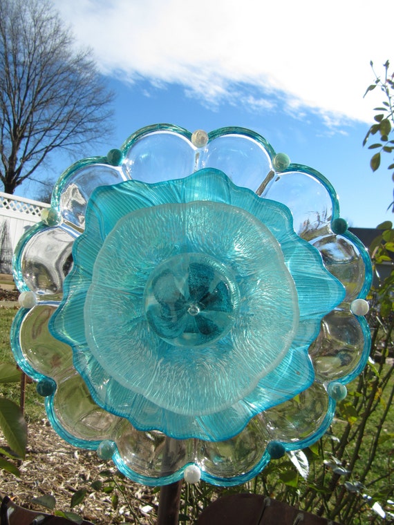 Glass Garden Art Plate Flowers Yard Art Outdoor Decor Etsy