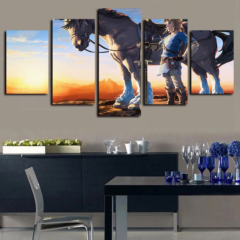 2020 5 Panels Horse Link The Legend Of Zelda Breath Of The Wild Canvas Wall Art For Kid Wall Decor Poster Canvas Print From Home Textiles 14 94 Dhgate Com